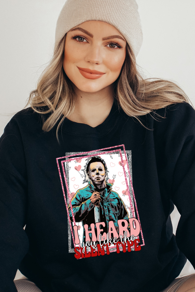 Stay cozy and stylish with our 'I Heard You Like The Silent Type' sweatshirt. Made from a soft cotton blend and featuring a spooky Valentine design, you'll feel warm and comfortable all season long. Perfect for those who love a little mystery.